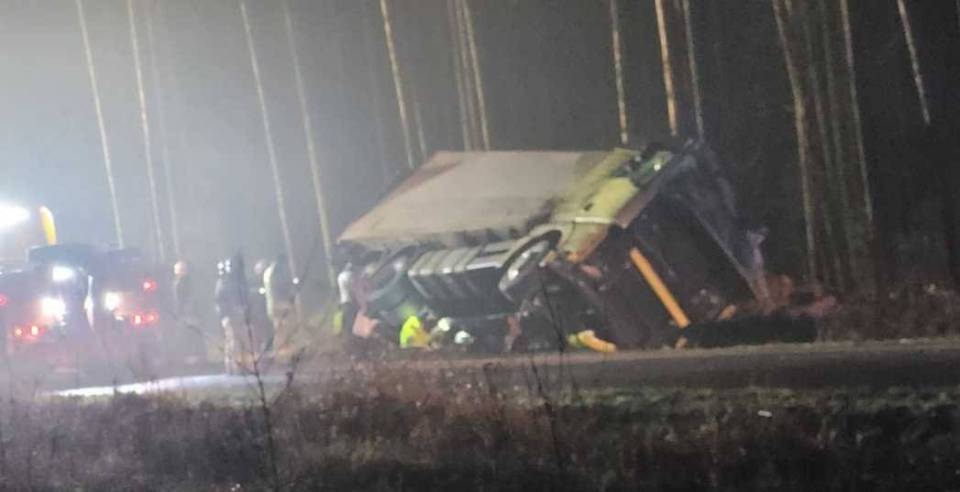 Z poczynionych ustaleń wynika, że 25-latek, kierując ciężarówka, z niewyjaśnionych dotąd przyczyn na łuku drogi wpadł w poślizg i wjechał do przydrożnego rowu uderzając w drzewo. W wyniku zdarzenia mężczyzna w stanie ciężkim został przetransportowany do szpitala. Jechał on z 62-letnim pasażem, który nie doznał obrażeń ciała. Obaj mężczyźni to mieszkańcy powiatu wieluńskiego.