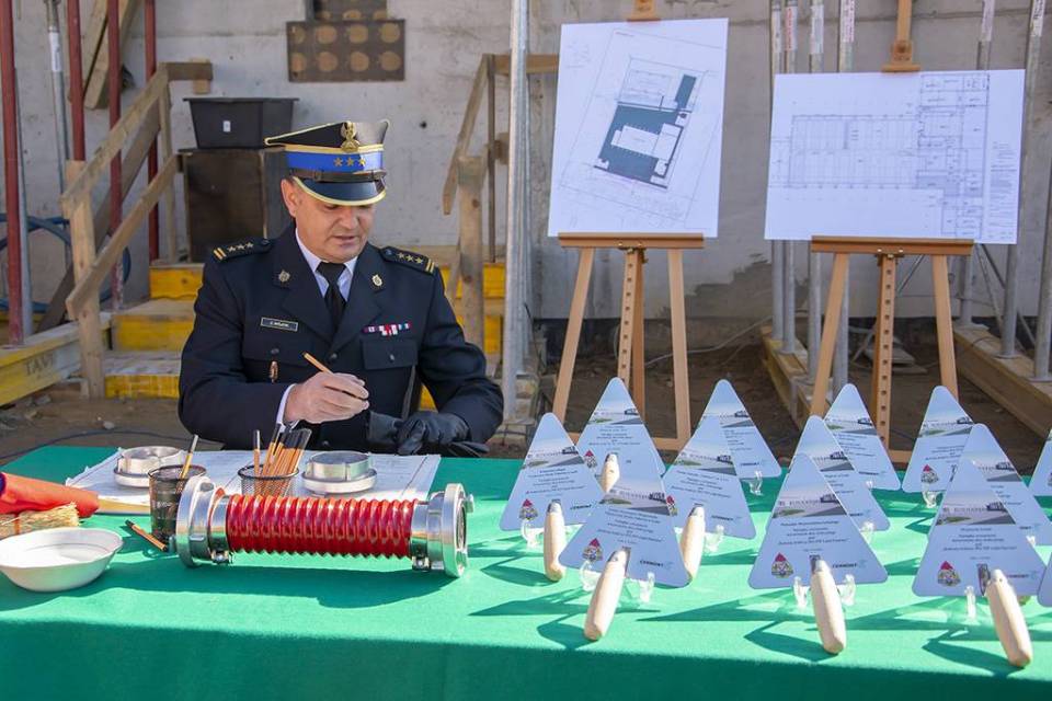 W uroczystości podpisania i wmurowania aktu erekcyjnego wzięli udział strażacy oraz przedstawiciele władz samorządowych.