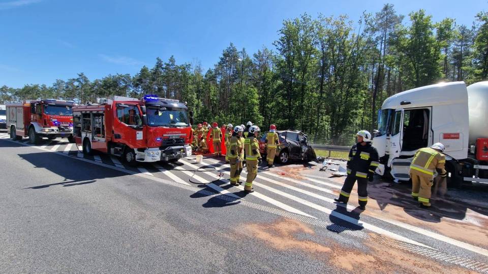 - Na szczęście cysterna nie uległa żadnemu uszkodzeniu, zagrożenia z tej strony nie ma - dodaje mł. bryg. Bartosz Stefanek z PSP Bełchatów.