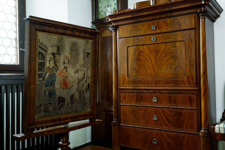 - Mamy tu, w trzech salach renesansowe stropy, mamy zachowane XVIII i XIX wieczne parkiety i stolarkę drzwiową. Nawet niektóre mechaniczne zamki działają, bo do dziś ich używamy! Sama brama wejściowa do zamku jest z lat 40 XIX wieku z ogromnym kluczem, który również jeszcze działa. Takie rzeczy, które powodują, że jak wchodzimy do zamku to od razu spotykamy ducha dawności – mówi dyrektor muzeum.